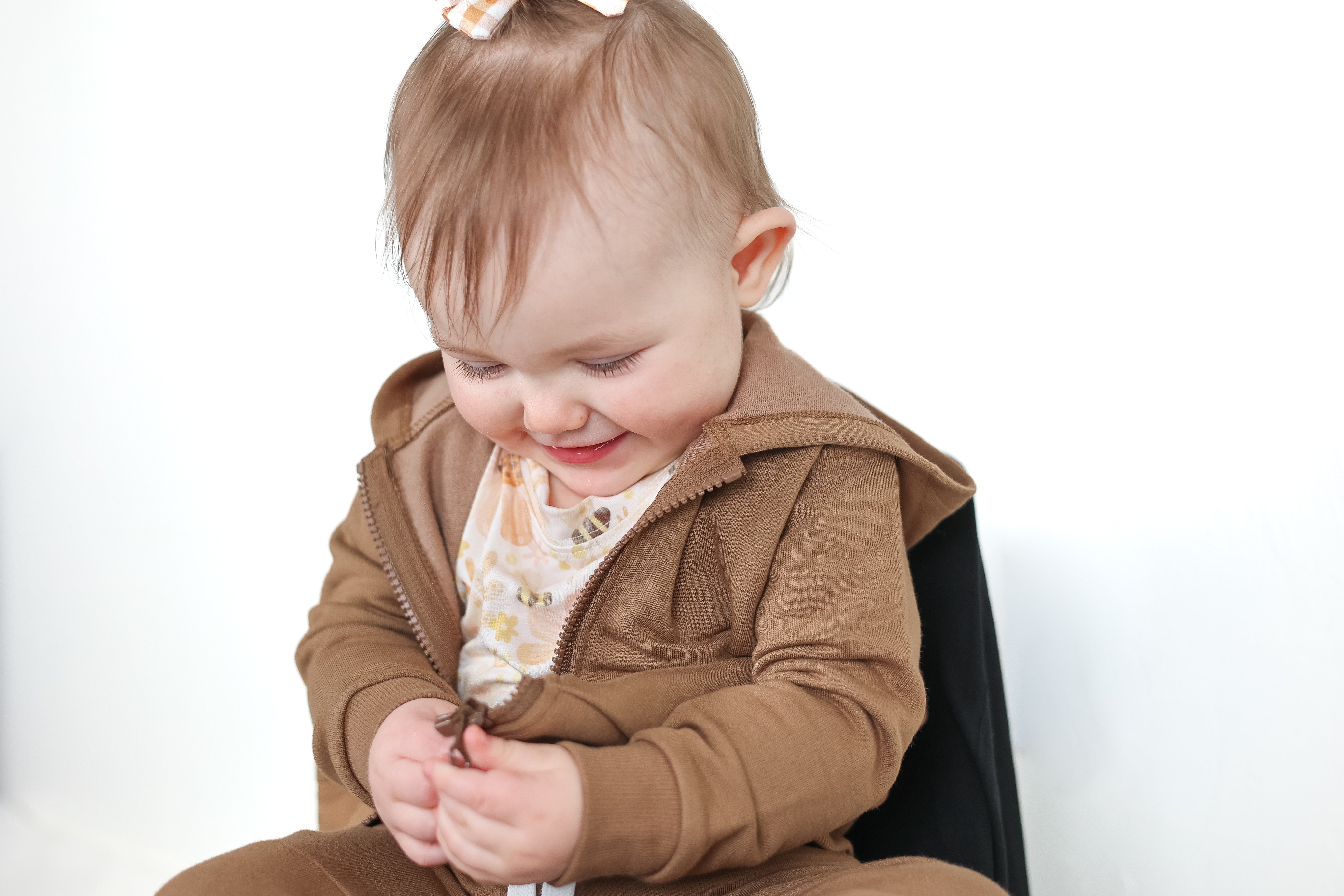 Introducing our Bamboo French Terry Zip Hoodies, crafted to offer the perfect blend of style, comfort, and functionality. Designed with versatility in mind, these hoodies are made from a mid-weight French terry fabric, ideal for year-round wear. With high-quality zippers, functional pockets, and an incredibly cute design, they are a must-have for any wardrobe.