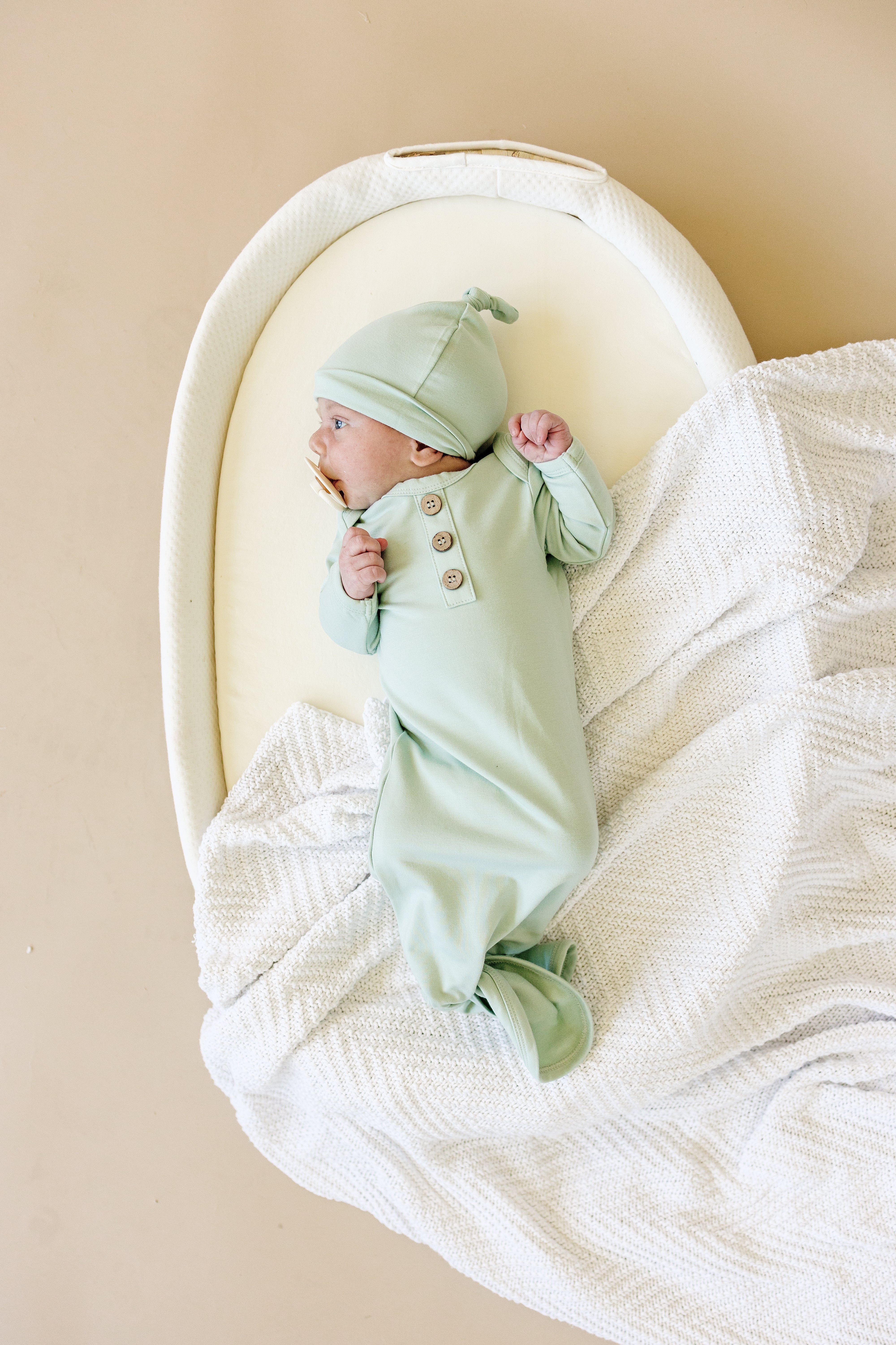 Wrap your little one in comfort and style with our Newborn Bamboo Gown & Hat Set—designed to perfectly coordinate with our Labor & Delivery Gowns. Featuring soft bamboo fabric and a gentle stretch, this gown is not only cozy but functional with a button accent and a convenient tie-bottom for quick diaper changes. Choose from three timeless colors: