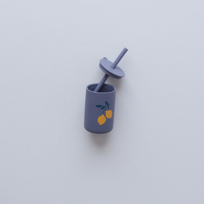 Silicone cup and straw lid for babies & toddlers. Straw is removable for easy washing.