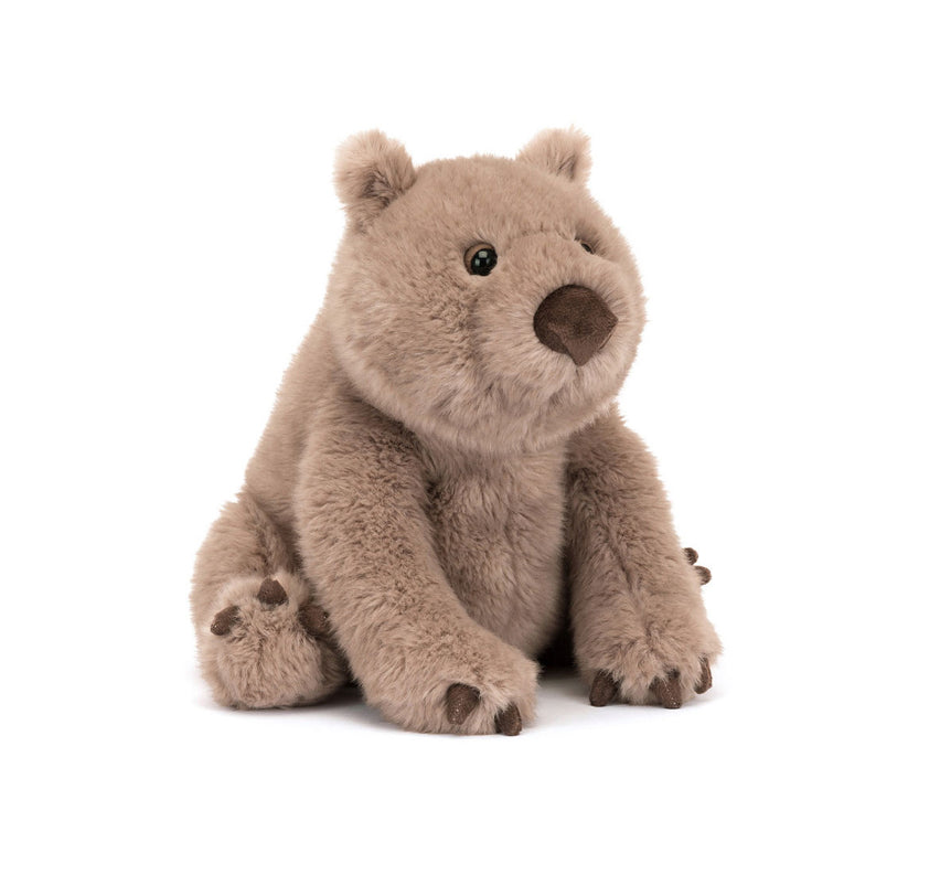 Wonda Wombat may be nocturnal, but she is always ready for a cuddle! In soft two-tone fur with the sweetest face, Wonda has a large chocolate drop suedette nose, long limbs with suedette claws, and a wee bobtail. The perfect marsupial to share a little extra joy every day!