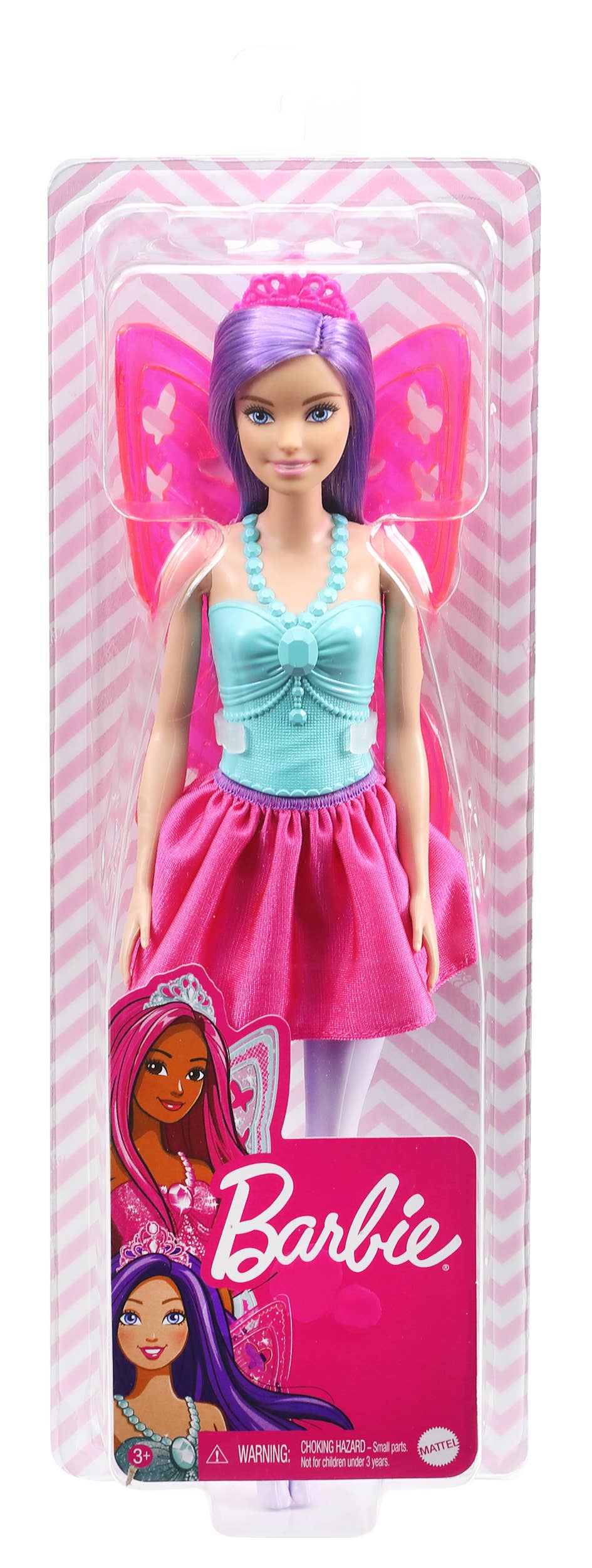 Doll features a gem inspired bodice, painted-on tights and a fairy skirt that's removeable. Colorful, purple hair, clip-on pink wings with sweet butterfly cut-outs, and a tiara complete the dreamy look. Ages 3Y+. Growth Channels.