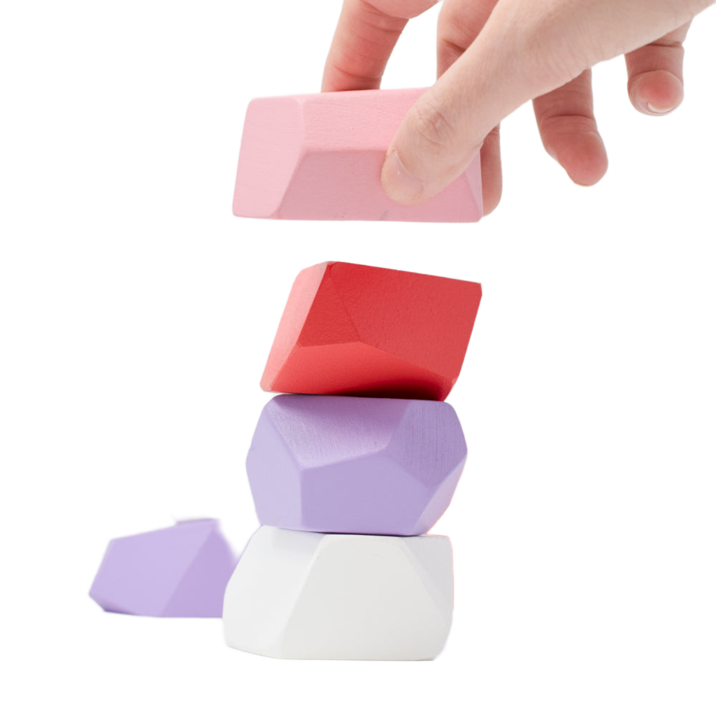 The 16-piece "Cupid" Rock Blocks set is a vibrant celebration of color and creativity, ideal for children who relish in imaginative play. This expansive set, with its captivating shades of pink, lilac purple, and cherry red, offers endless opportunities for building and creativity. Handcrafted in the USA, these Montessori wooden blocks foster open-ended play and enhance cognitive skills in older children and those ready for more complex challenges.