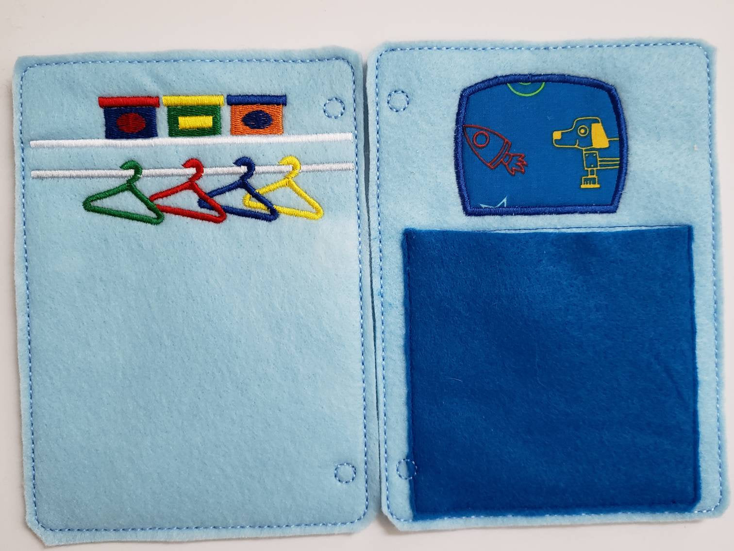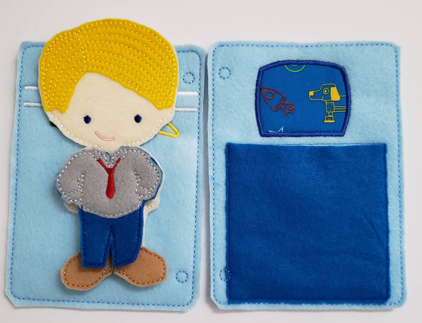 Astronaut boy felt paper doll - doll clothes storage - quiet activity page - busy book page