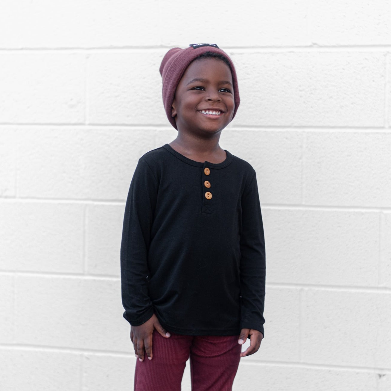 Introducing our Bamboo Long-Sleeve Henley Tees, made from breathable, silky smooth 95% Bamboo Viscose and 5% Spandex. These beautifully constructed long-sleeve tees are designed with care and precision, ensuring a perfect blend of comfort, style, and quality for your little one.