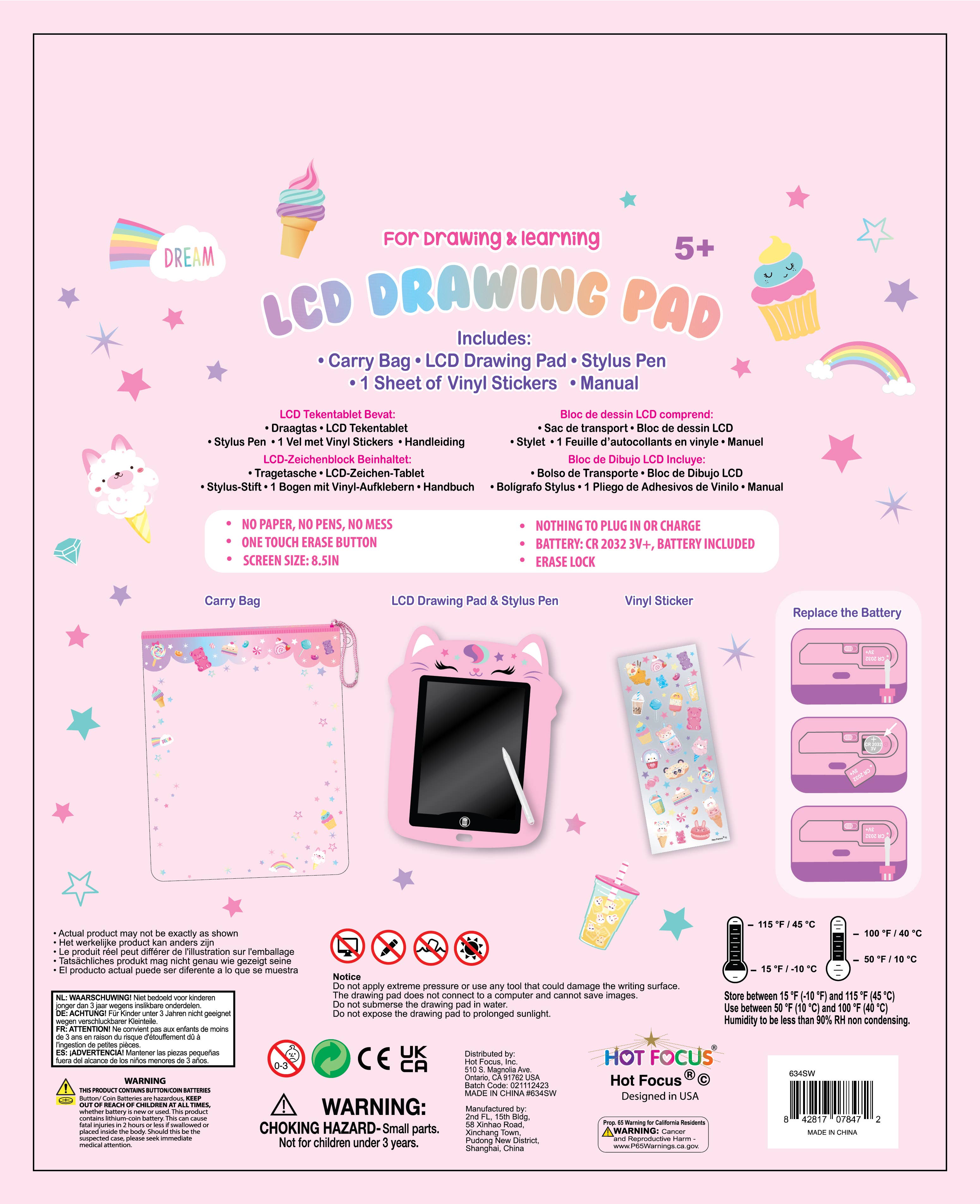 Unlock the world of creativity and imagination with our LCD Drawing Pad Tablet, a perfect tool to explore your artistic talents. Designed for ease of use and endless creative possibilities, this tablet comes with an erase button and a stylus pen. Contains: 1 Novelty Shaped LCD Drawing Pad w/ Stylus Pen 1 Reusable Bag w/ Handle 1 Sheet of Vinyl Stickers