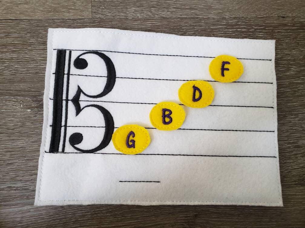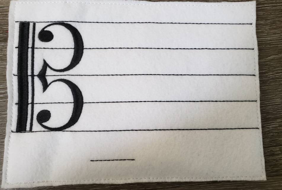 This listing is for a alto clef music staff with movable pieces to help learn how to read music. Each set comes with the alto clef music staff and A, B, C , D, E, F, and G notes. This is a great tool to use in the classroom. I can do other colors and I also have a pattern for a treble and bass clef. There is a pocket on the back of the music staff to keep all your note pieces.