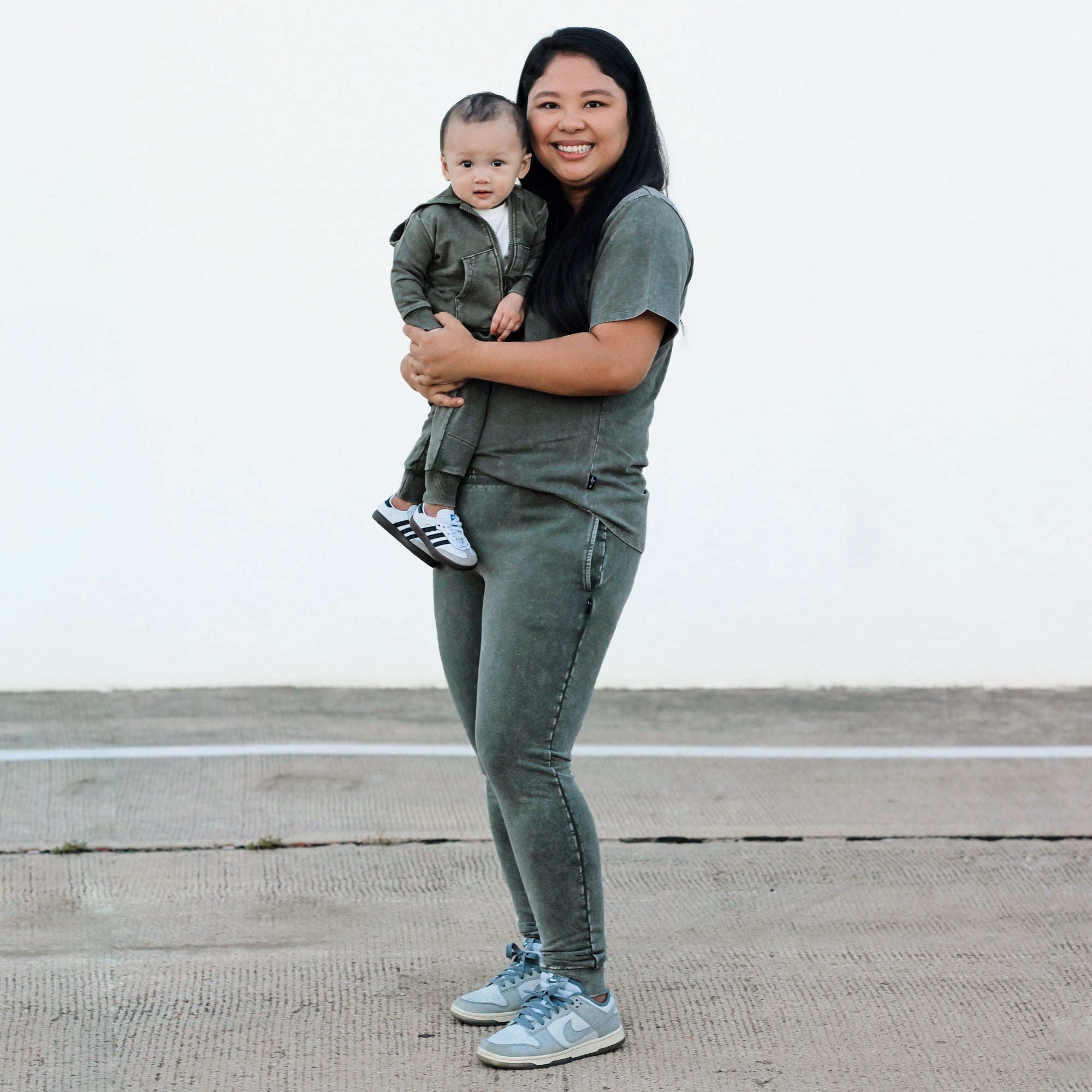 Elevate your comfort with our Snow Wash Mama Joggers, crafted from OEKO-TEX certified organic cotton. Designed for versatility, these joggers are perfect for lounging around the house, hanging at the ballpark, or running errands. Whether you're pairing them with a favorite sweatshirt for a comfy gym session or a chic tee for a casual outing, these joggers combine functionality and fashion seamlessly.