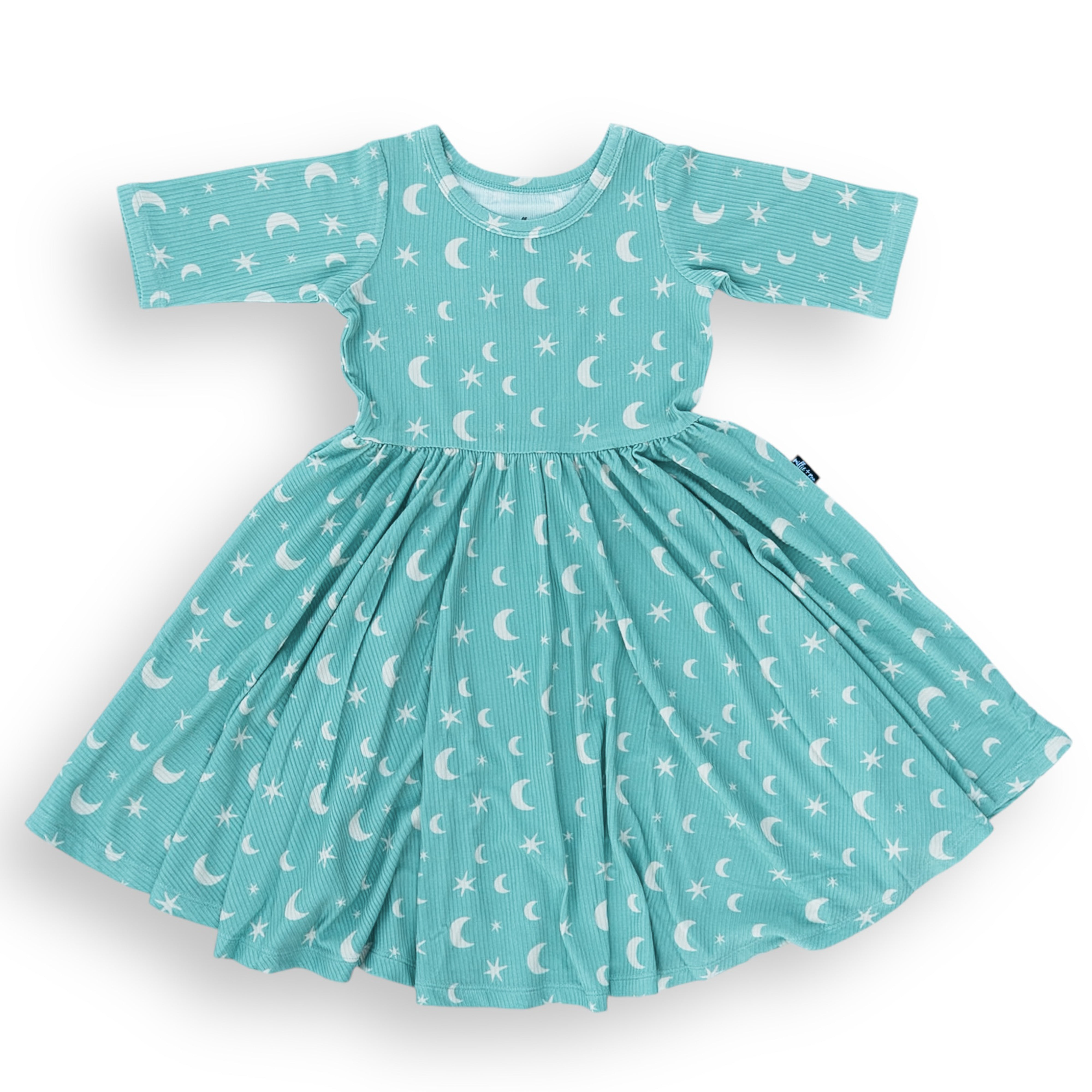 MID SLEEVE TWIRL- Moon + Stars Ribbed