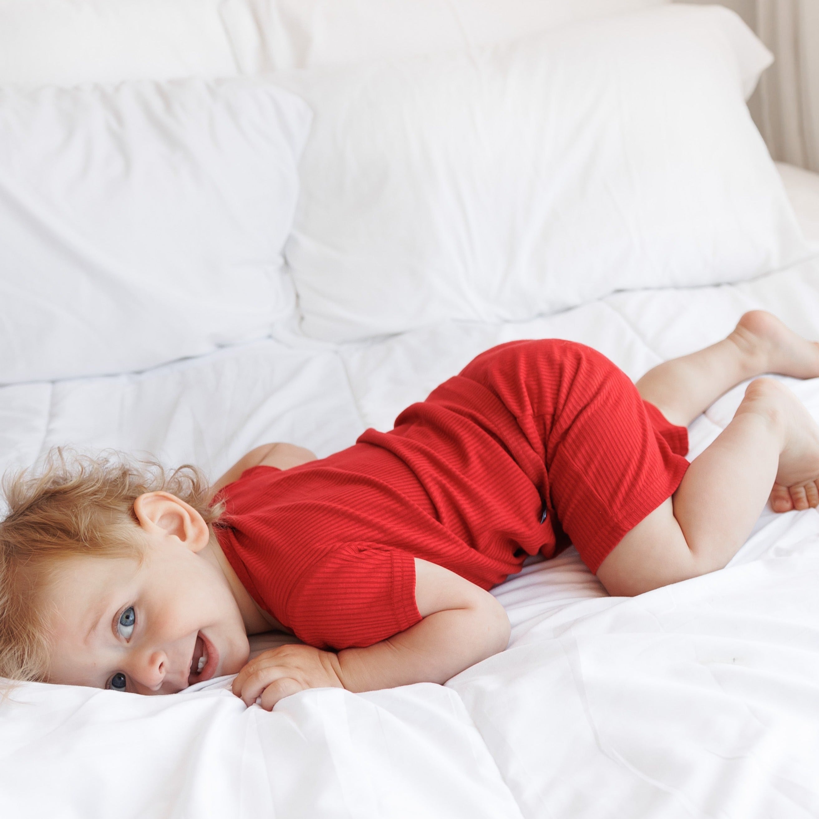 • Ribbed Material: Our buttery-soft ribbed material is a customer favorite for a reason! The ribbed material allows for even more stretch - meaning these will last even longer on your growing little one. We do NOT recommend sizing up in our ribbed line!