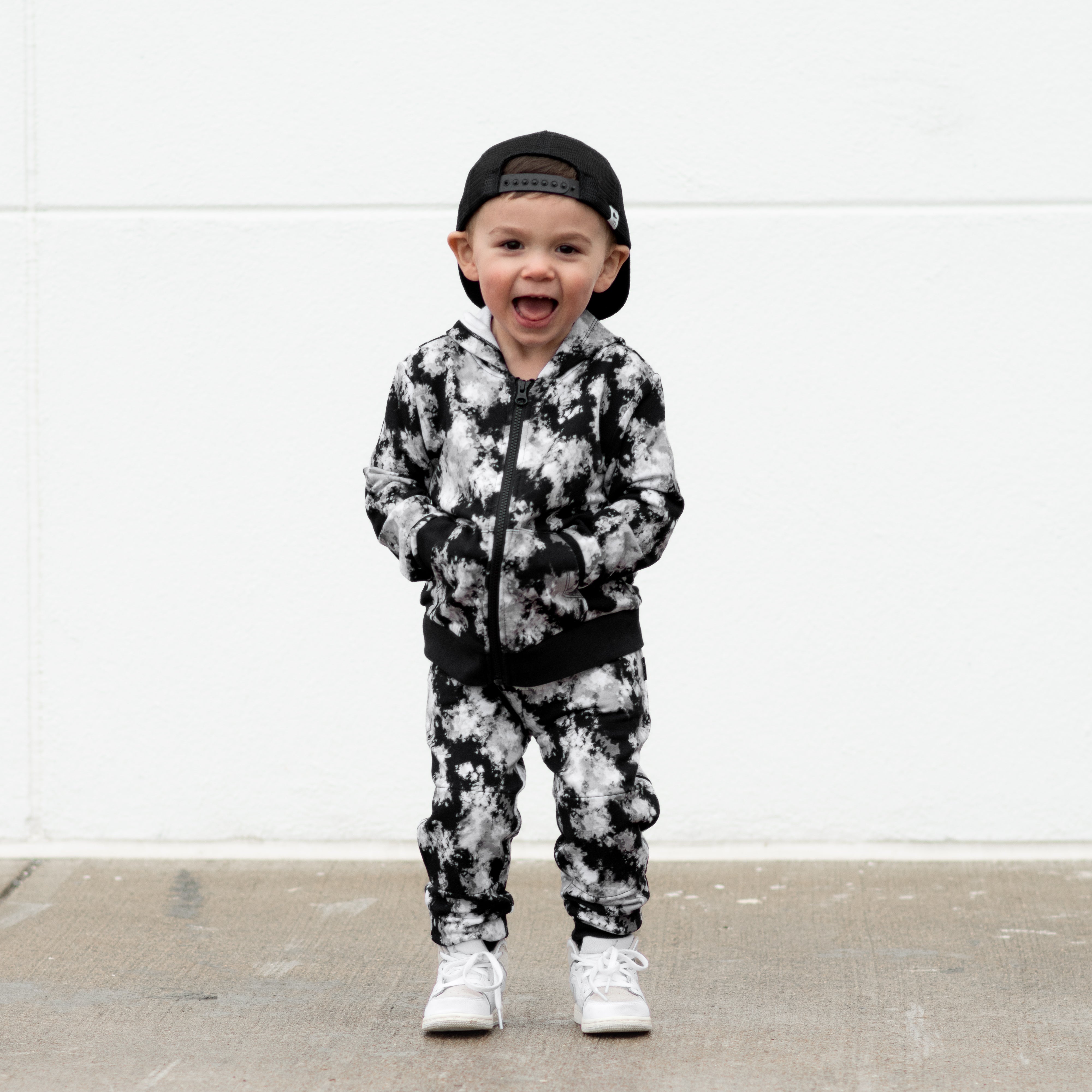 ZIP HOODIE- Black Tie Dye Bamboo French Terry