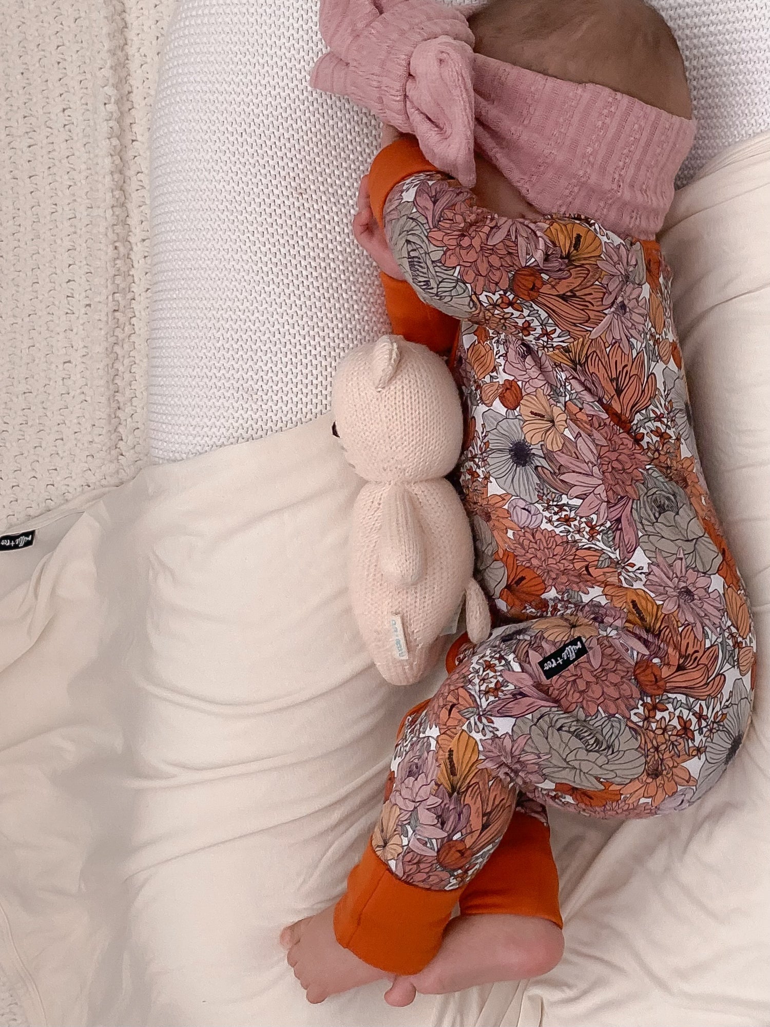 Introducing our Zip Romper, crafted from breathable, silky smooth 95% Bamboo Viscose and 5% Spandex in custom prints. This long sleeve romper combines style, comfort, and convenience, making it a must-have for your little one's wardrobe.
